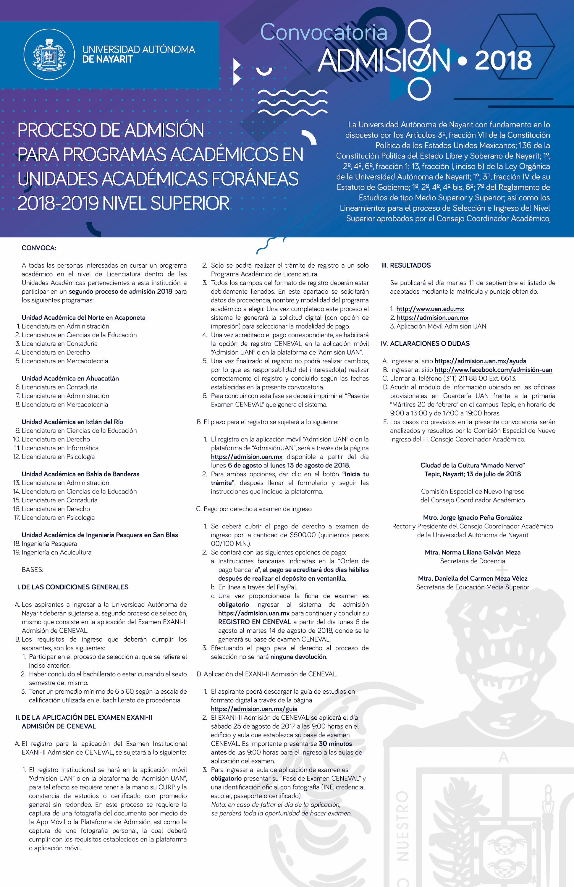 Convocatoria de Admisión Unidades Académicas Foráneas. 2018