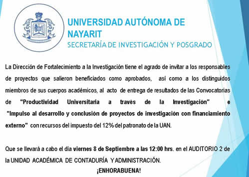 Entrega de Resultados “Productividad Universitaria a través de la Investigación