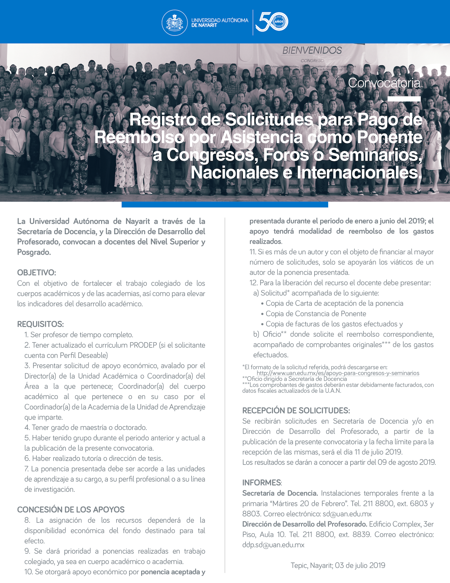 El formato para llenado de solicitud puede descargarla en: http://www.uan.edu.mx/es/apoyo-para-congresos-y-seminarios