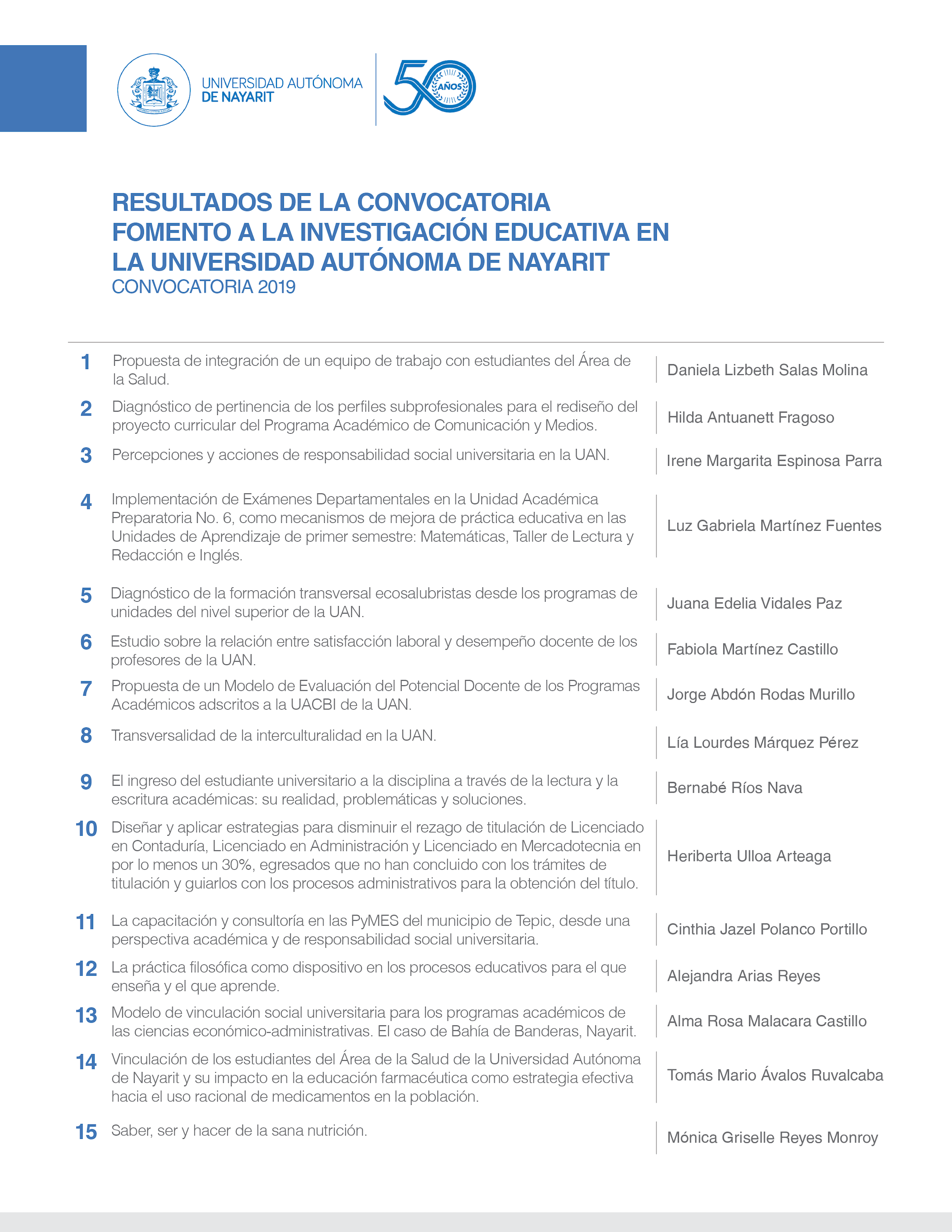 Resultados de la convocatoria Fomento a la Investigación Educativa 2019